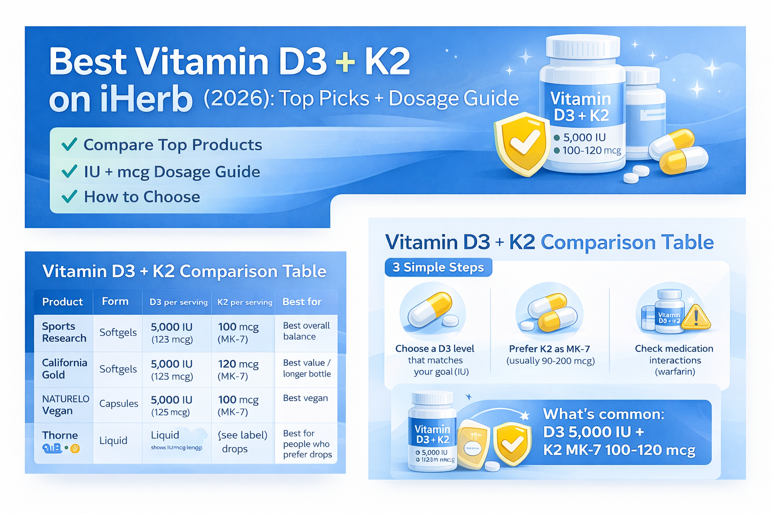 Best Vitamin D3 + K2 on iHerb (2026): Top Picks, Dosage, and How to Choose